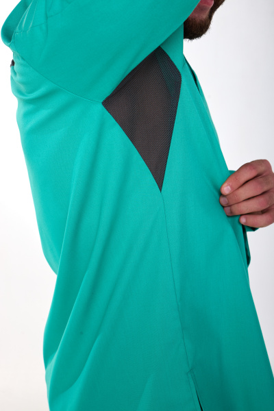 Куртка прямого силуэта с центральной застежкой на кнопки, длинным рукавом и разрезами в боковых швах для свободной посадки на бедрах. Вентиляционные вставки под проймой и кокеткой на спинке обеспечат комфорт на протяжении всей смены