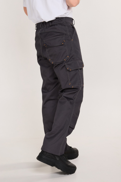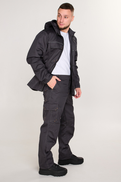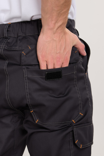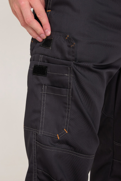 Для износостойкости на передних половинках наколенники из основной ткани с возможностью установки амортизационных вкладышей.