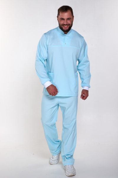 Арт. МО28 Костюм прямого силуэта с длинными рукавами с контрастными эластичными манжетами. Застежка поло с воротником-стойкой, накладные карманы. Сетчатые вставки под проймой. Прямые брюки без карманов. Пояс на резинке. Костюм подходит как для сотрудников медицинских организаций и лабораторий, так и для персонала сферы персонала сферы HORECA и бьюти-индустрии. Комфортная и практичная смесовая ткань на основе вискозы с эластаном. Цвет Адуляр |
