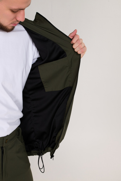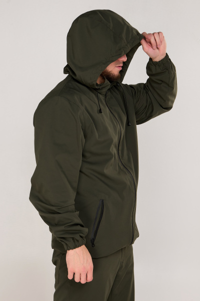 Куртка мужская прямого силуэта из мембранной ткани. Капюшон с утяжкой. Застежка центральная с водонепроницаемой тесьмой-молнией.